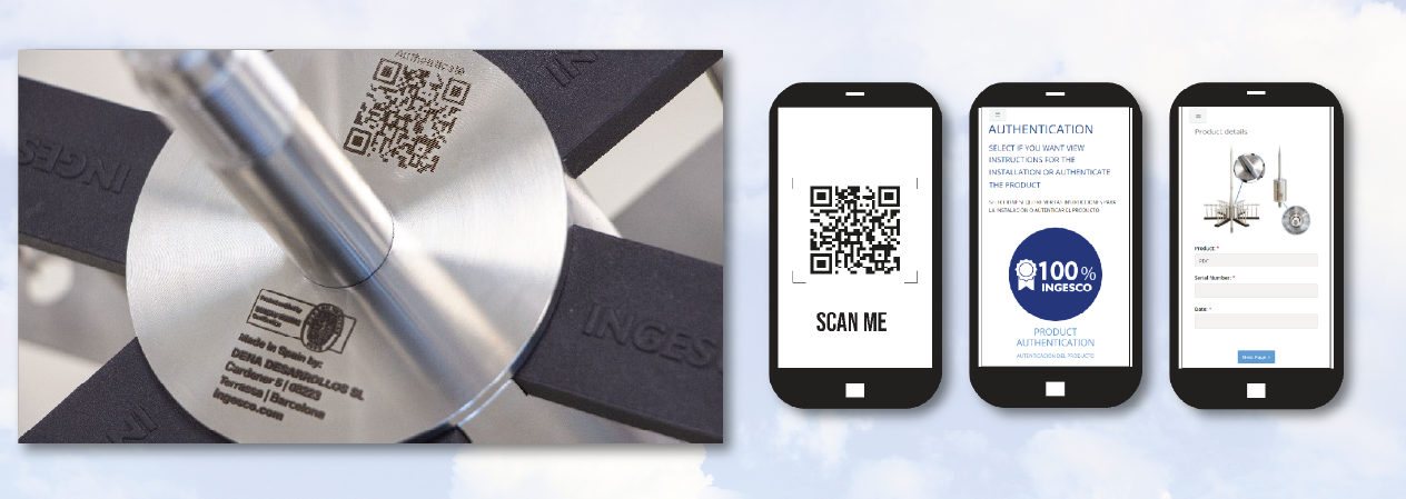 - QR Authentication: Each INGESCO lightning rod has a laser-engraved QR code. This code is unique and allows direct verification with our team, ensuring the authenticity of the product. Do not accept any other type of marking or labeling.