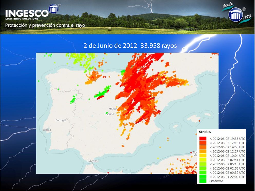 • Los días tormentosos más activos han sido el 19 y 20 de mayo , junto con los días 1, 2 y 3 de junio, batiéndose el récord de descargas registradas el dia 2 de junio con mas de 30.000 rayos contabilizados.